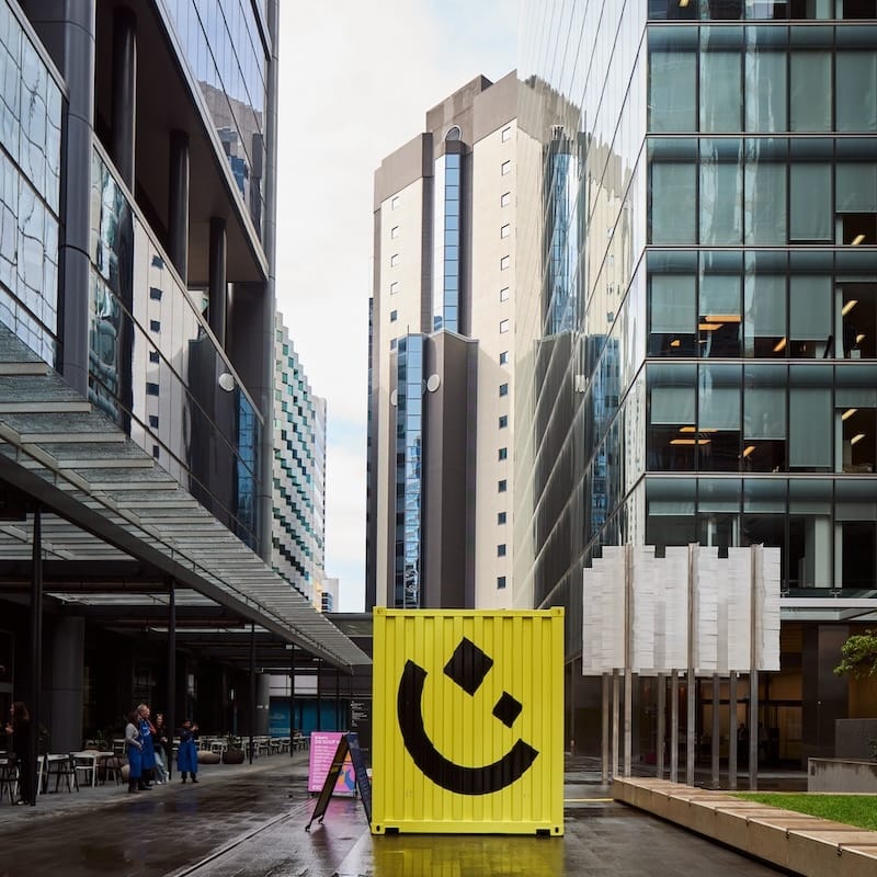 A bright yellow sea container has taken centre stage at Brookfield Place - a purpose-built community initiative giving WA charities a platform in the CBD.