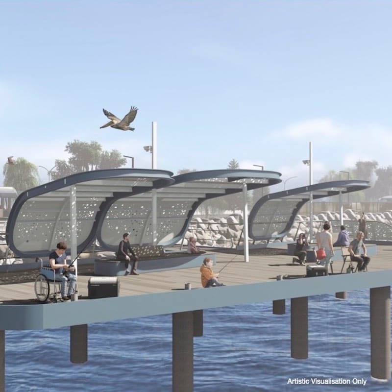 Set one-third of the way along the 460m breakwater currently under construction, the platform will be 25m in length, and include 10 wheelchair bays, seating, sun and wind shelters and lighting for evening fishing.