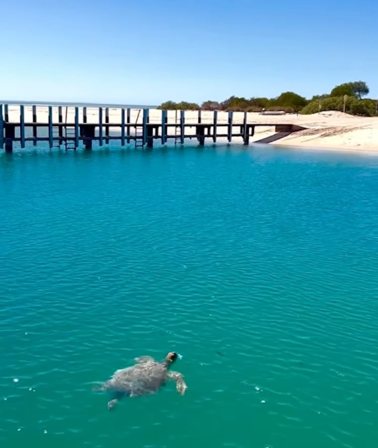 A curious little turtle taking a moment to breathe near Shark Bay, captured by @frombeesview_